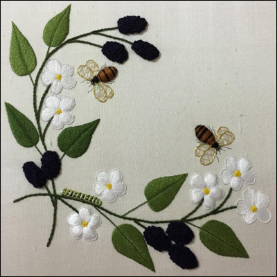 straw silks, Waterlilies, and solid and over-dyed cotton floss and pearl cotton, instruction