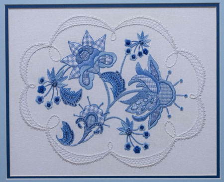 The kit cost is $95 and includes the 16” x 20” line drawn canvas, threads to include