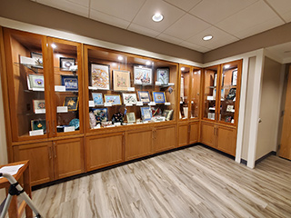 locked cases that are 54 inches tall with many movable shelves. This was a chance to show
